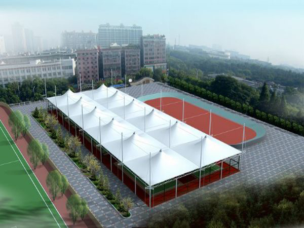 PTFE膜結(jié)構(gòu)羽毛球場優(yōu)勢:PTFE膜結(jié)構(gòu)羽毛球場擁有良好的力學性能、出色的耐候性、自潔性、透光性、造型美觀、施工便捷等優(yōu)勢。PTFE膜材具有較高的抗拉強度、撕裂強度和抗疲勞性能,能夠承受風雨、積雪等自然荷載,確保羽毛球場屋蓋在各種氣候條件下的安全性和穩(wěn)定性,可滿足不同規(guī)模和使用要求的羽毛球場建設(shè)。還具有良好的耐候性和耐化學腐蝕性,能抵御酸、堿、鹽等化學物質(zhì)的侵蝕,在紫外線長期照射下,不易褪色和老化,可延長羽毛球場的使用壽命。PTFE膜材表面光滑,不沾灰塵和污垢,雨水沖刷即可保持表面清潔,使羽毛球場外觀始終保持整潔美觀,減少了后期的清潔維護工作和成本。膜材具有良好的透光性,能夠讓陽光透過屋頂灑進場地內(nèi),營造出明亮而溫暖的環(huán)境,白天無需開燈也能保證充足的照明,不僅節(jié)省能源,還能為運動員和觀眾提供舒適的視覺體驗。PTFE膜結(jié)構(gòu)可以通過設(shè)計不同的形狀、曲線和色彩,創(chuàng)造出獨特而美觀的建筑造型,為羽毛球場增添現(xiàn)代感和藝術(shù)氛圍,使其成為城市景觀的一部分。膜材質(zhì)量輕,安裝過程更加便捷高效,大大縮短了施工周期。同時,膜結(jié)構(gòu)的裁剪和拼接可以在工廠預先完成,減少了現(xiàn)場施工的工作量和難度,提高了施工效率。