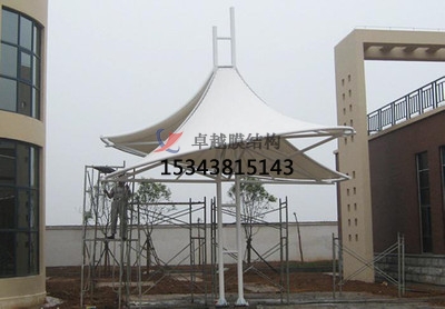 膜結(jié)構(gòu)景觀其造型自由、輕巧、柔美,充滿力量感、阻燃、制作簡易、安裝快捷、節(jié)能、使用安全等優(yōu)勢,讓各種藝術(shù)性的膜結(jié)構(gòu)景觀造型建筑呈現(xiàn)在人們眼前。從材料上來看,PVDF膜材色彩豐富彩色建筑世界更加絢爛多姿;PTFE膜材越用越白度過出淤泥而不染的潔凈的一生。
