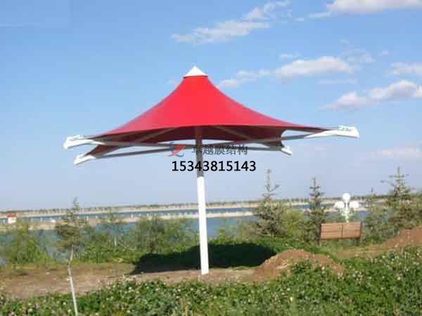 張拉膜景觀遮陽棚的特點:張拉膜景觀遮陽棚具有輕質(zhì)高強、造型多樣、透光性好、耐候性強、施工快捷、環(huán)保節(jié)能、功能復合、維護簡便等多種特點。其采用高強度纖維織物,如聚酯纖維或玻璃纖維,表面涂覆PVC或PTFE等涂層,重量輕但承載能力出色,適合大跨度結構,能減少基礎結構的負擔。膜材具有高度的可塑性,通過鋼索或骨架張拉,可形成流線型、曲面等豐富的造型,如曲線、動態(tài)形狀等,能夠與自然景觀或周圍環(huán)境相融合,創(chuàng)造出獨特的視覺效果,成為景觀中的亮點。部分膜材透光率可達10%-40%,白天可充分利用自然光,減少人工照明能耗,同時營造明亮舒適的空間氛圍;夜晚燈光透射可形成獨特的光影效果,增強景觀的藝術感染力。膜材表面經(jīng)過特殊涂層處理,具備抗紫外線、耐腐蝕、防水、自潔等性能,能夠適應各種惡劣的戶外氣候條件,延長使用壽命,減少維護成本。其構件多在工廠預制,現(xiàn)場安裝簡便,施工周期短,對場地的影響小,能夠快速搭建完成,盡快投入使用,尤其適合一些緊急或臨時性的項目。多數(shù)膜材料可回收利用,符合可持續(xù)發(fā)展理念;其透光性和保溫性能有助于降低能耗,減少對環(huán)境的影響。張拉膜景觀遮陽棚兼具遮陽、擋雨、防風、空間劃分、藝術裝飾等多重功能,還可以與其他設施如噴霧降溫設備、照明設備等相結合,提供更豐富的使用體驗。其表面光滑不易積塵,日常僅需簡單清潔,定期檢查節(jié)點和膜面狀況即可保障結構的安全和正常使用,維護成本較低。