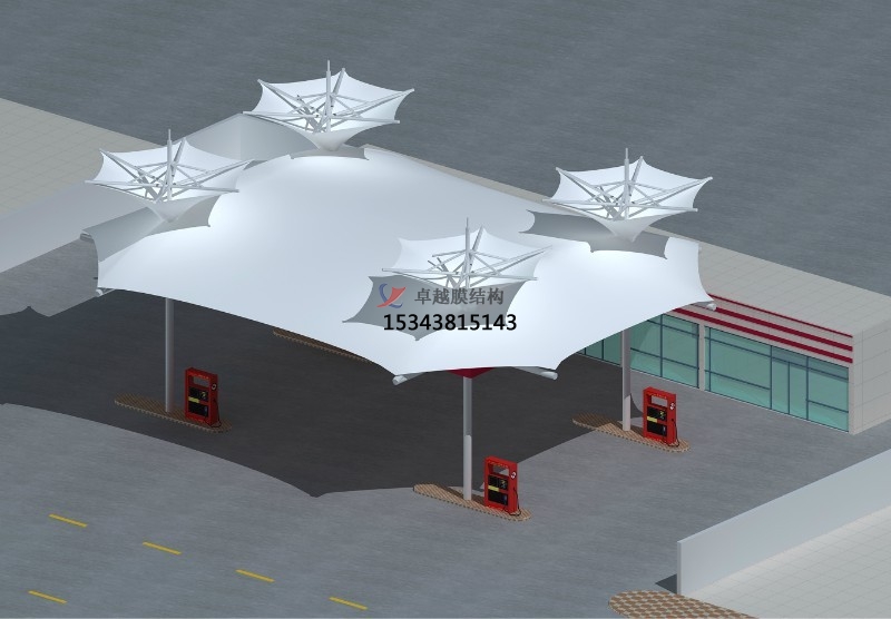 第三、膜結構加油站的內部采用Φ38鍍鋅圓管與加油站框架焊接,這樣一來不但可以有效加強頂部強度,還可以讓加油站看上去通風,采光效果好。更是符合更好的規(guī)定的加油站建造要求規(guī)范。