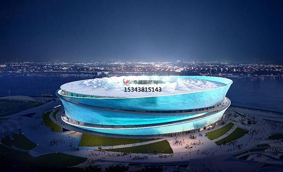 膜結(jié)構(gòu)體育場(chǎng)館的類型與結(jié)構(gòu):其類型與結(jié)構(gòu)主要分為氣膜結(jié)構(gòu)、骨架支承式膜結(jié)構(gòu)、ETFE膜結(jié)構(gòu)氣枕。其中氣膜結(jié)構(gòu),采用高強(qiáng)度防火膜材及智能增壓系統(tǒng),無需傳統(tǒng)鋼梁支撐,通過氣壓差形成穹頂結(jié)構(gòu),具備快速搭建(15-30天完成)、可拆卸遷移的特點(diǎn)。適用于籃球館、游泳館等場(chǎng)景,尤其適合校園、臨時(shí)賽事等靈活需求。骨架支承式膜結(jié)構(gòu)是以鋼管拱形桁架或混凝土框架為骨架,覆蓋PVC或ETFE膜材,形成大跨度空間(如嘉興市體育中心主體育場(chǎng)跨度達(dá)24500平方米)。常用于大型體育場(chǎng)看臺(tái),兼顧穩(wěn)固性與視覺美感。ETFE膜結(jié)構(gòu)氣枕在大連市體育中心采用ETFE充氣枕幕墻,面積超10萬平方米,具有透光性、自潔性及動(dòng)態(tài)燈光效果,適用于標(biāo)志性體育場(chǎng)館。