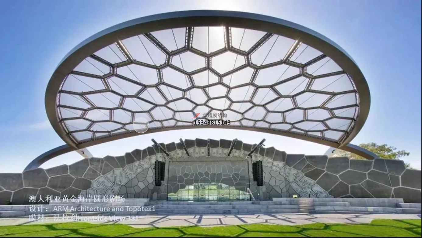 其實,每種膜材都有各自不可替代的優(yōu)點,同時又有一時難以克服的不足,十全十美的膜材可能不現(xiàn)實。這就需要業(yè)主和設計師,根據(jù)具體項目的特點,做出適當?shù)娜∩?,充分利用某種膜材的優(yōu)點、同時通過其它技術手段彌補其不足,做到物盡其用,好鋼用在刀刃上。