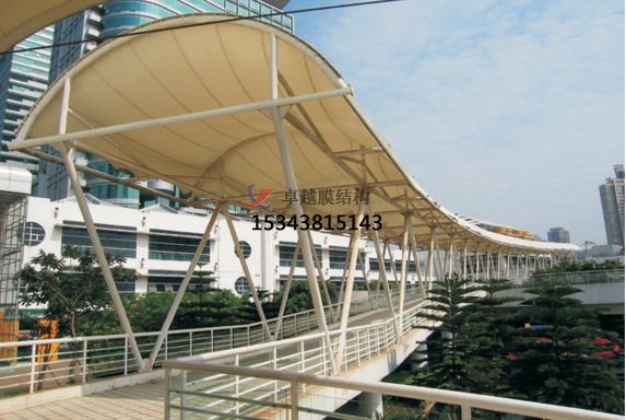 膜結(jié)構(gòu)遮陽篷:膜的遮陽篷材料的結(jié)構(gòu)是膜結(jié)構(gòu)遮陽篷,膜材料,更大的特點(diǎn)是高強(qiáng)度,耐久性好,阻燃,清潔性好,不受紫外線輻射,使用壽命長,一般15 - 30年。透光率高,透光率為13%,反射熱量的73%,熱量可以吸收一些。