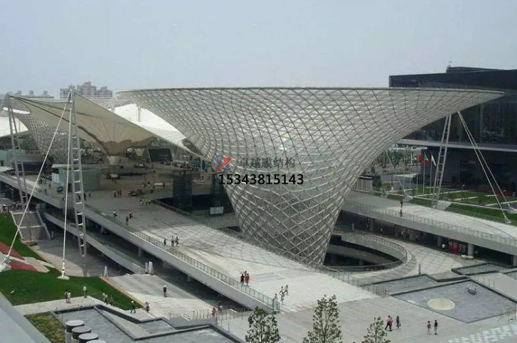膜結(jié)構(gòu)是建筑結(jié)構(gòu)中更新發(fā)展起來(lái)的一種形式,它以性能優(yōu)良的織物為材料,或是向膜內(nèi)充氣,由空氣壓力支撐膜面,或是利用柔性鋼索或剛性支撐結(jié)構(gòu)將面繃緊,從而形成具有一定剛度、能夠覆蓋大跨度空間的結(jié)構(gòu)體系。自從1970年代以來(lái), 膜結(jié)構(gòu)在國(guó)外已逐漸應(yīng)用于體育建筑、商場(chǎng)、展覽中心、交通服務(wù)設(shè)施等大跨度建筑中。膜結(jié)構(gòu)已成為結(jié)構(gòu)設(shè)計(jì)選型中的一個(gè)主要方案。成為化纖紡織品應(yīng)用的一個(gè)重要領(lǐng)域。近年來(lái)在中國(guó)建筑 結(jié)構(gòu)中也有長(zhǎng)足的進(jìn)展。大阪萬(wàn)國(guó)博覽會(huì)中的美國(guó)館采用了氣承式空氣 膜結(jié)構(gòu)。