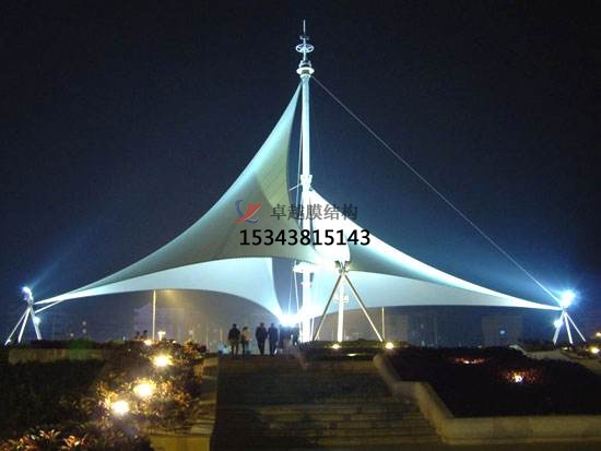 一個(gè)城市的中心區(qū)反映一個(gè)城市的地理風(fēng)貌和民族風(fēng)情,同時(shí),也是一個(gè)城市文化發(fā)展程度的標(biāo)志。而景觀設(shè)計(jì)要求其具有廣泛的可讀性、雅俗共賞,既有超凡脫俗的藝術(shù)價(jià)值,又能使大眾喜聞樂見與大眾息息相通。張拉膜以其鮮明的個(gè)性和標(biāo)識(shí)性,應(yīng)用于城市小品設(shè)計(jì)中。