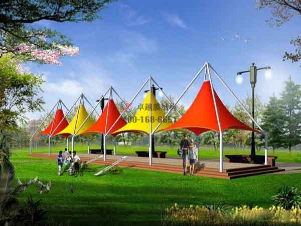 項目結構形式:四周軟邊骨架式膜結構景觀小品