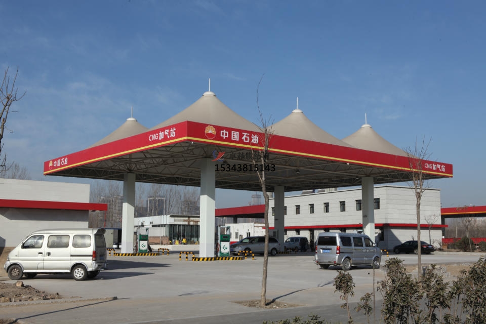 當(dāng)您乘車路過某條高速公路或城市大道時,每隔一段路程就會有加油站進(jìn)入到您的眼簾,而這些建筑的大棚都是青色的網(wǎng)架,沒有一點(diǎn)生機(jī),不妨用膜結(jié)構(gòu)來搭加油站大棚來沖擊一下您的視覺。