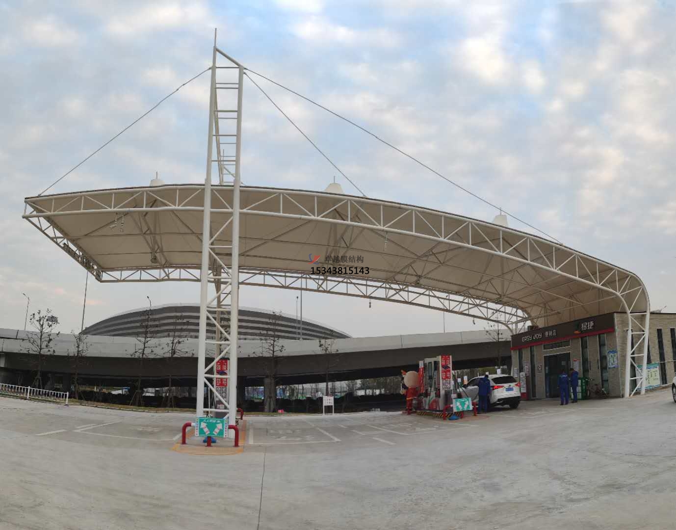 加油站膜結(jié)構(gòu),一般是指安裝在加油站的膜結(jié)構(gòu)頂棚。膜結(jié)構(gòu)頂棚因其自重輕,具有良好的受力特點(diǎn),所以成為大跨度空間結(jié)構(gòu)的主要形式之一,加油站膜結(jié)構(gòu)也屬于其范疇。