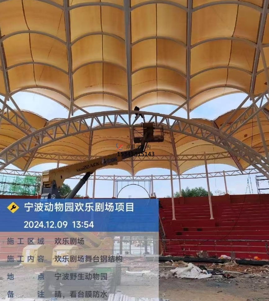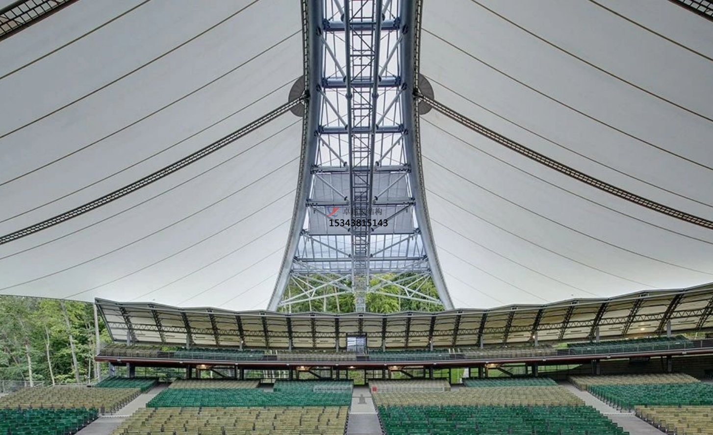 PTFE膜材可以承受比較大的預(yù)應(yīng)力,更好的剛性,所以使用PTFE膜材不僅要考慮膜材的抗拉強度,還要考慮預(yù)應(yīng)力的釋放。