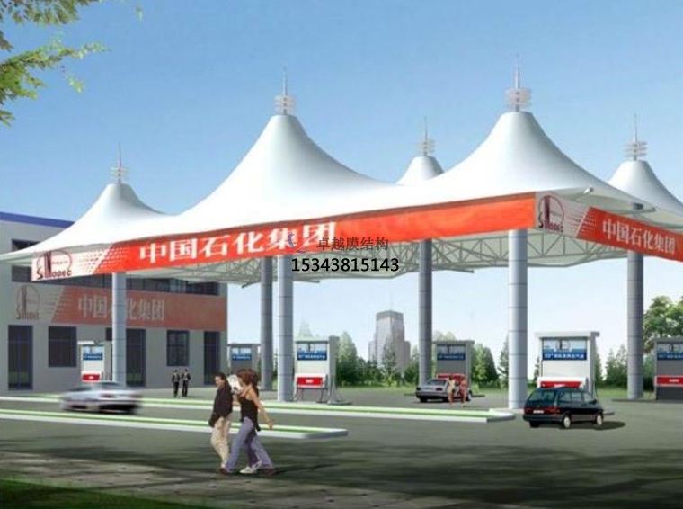 加油站膜結(jié)構(gòu),一般是指安裝在加油站的膜結(jié)構(gòu)頂棚。膜結(jié)構(gòu)頂棚因其自重輕,具有良好的受力特點,所以成為大跨度空間結(jié)構(gòu)的主要形式之一,加油站膜結(jié)構(gòu)也屬于其范疇。