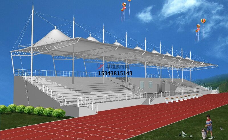 張拉膜看臺主要用于各類地方體育場主席臺雨棚,各類學(xué)校體育場看臺雨棚遮蓋,我公司是國內(nèi)較早從事大懸挑張拉膜結(jié)構(gòu)看臺設(shè)計施工的專業(yè)廠家,下面介紹一下我們在北京市周邊縣市完工的一些張拉膜看臺設(shè)計施工案例,我公司先后在北京周邊承接了北京市第八中學(xué)張拉膜看臺雨棚、北京市第四中學(xué)張拉膜張拉膜看臺罩棚、北京中學(xué)張拉膜看臺遮陽棚等設(shè)計施工項目,簡介如下: