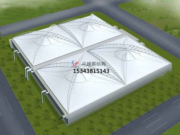 2、卓越膜結(jié)構(gòu)工程公司是集污水池加蓋反吊膜加蓋工程設(shè)計(jì)施工、結(jié)構(gòu)設(shè)計(jì)、靜動(dòng)力計(jì)算分析、整體結(jié)構(gòu)安裝以及使用維護(hù)于一體的綜合性工程公司。污水池反吊膜結(jié)構(gòu)中的高強(qiáng)度柔韌薄膜稱膜材,它是一種耐腐蝕、耐高溫、耐久用、高強(qiáng)度的樹脂類涂層織物,由多種復(fù)合PVC樹脂涂層刀刮成型,具有質(zhì)地柔韌、厚度小、重量輕、透光性好的特點(diǎn)。對(duì)自然光吸收和透射能力、阻燃,具有良好的耐久、防火、氣密等特性;表面經(jīng)過(guò)特氟龍?zhí)幚砘蚨趸伩估匣幚?,具有較高的自清潔性能。下面就大家介紹一下我公司在棗莊市地區(qū)完成的部分污水池膜結(jié)構(gòu)封閉項(xiàng)目。