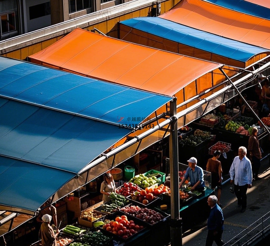 城市中心傳統(tǒng)農(nóng)貿(mào)市場(chǎng)改造:在城市核心區(qū)域,土地資源緊張,傳統(tǒng)農(nóng)貿(mào)市場(chǎng)設(shè)施陳舊、空間局促。膜結(jié)構(gòu)改造方案通過拆除原有老舊頂棚,搭建輕巧、美觀的膜結(jié)構(gòu)頂棚,能在不增加過多占地面積的情況下,優(yōu)化市場(chǎng)空間,提升采光、通風(fēng)效果,改善購(gòu)物環(huán)境,同時(shí)保留傳統(tǒng)市場(chǎng)的煙火氣,讓城市記憶與現(xiàn)代功能完美融合,如北京的部分老城區(qū)農(nóng)貿(mào)市場(chǎng)改造項(xiàng)目,就借助膜結(jié)構(gòu)實(shí)現(xiàn)了華麗轉(zhuǎn)身,重新煥發(fā)生機(jī)。
