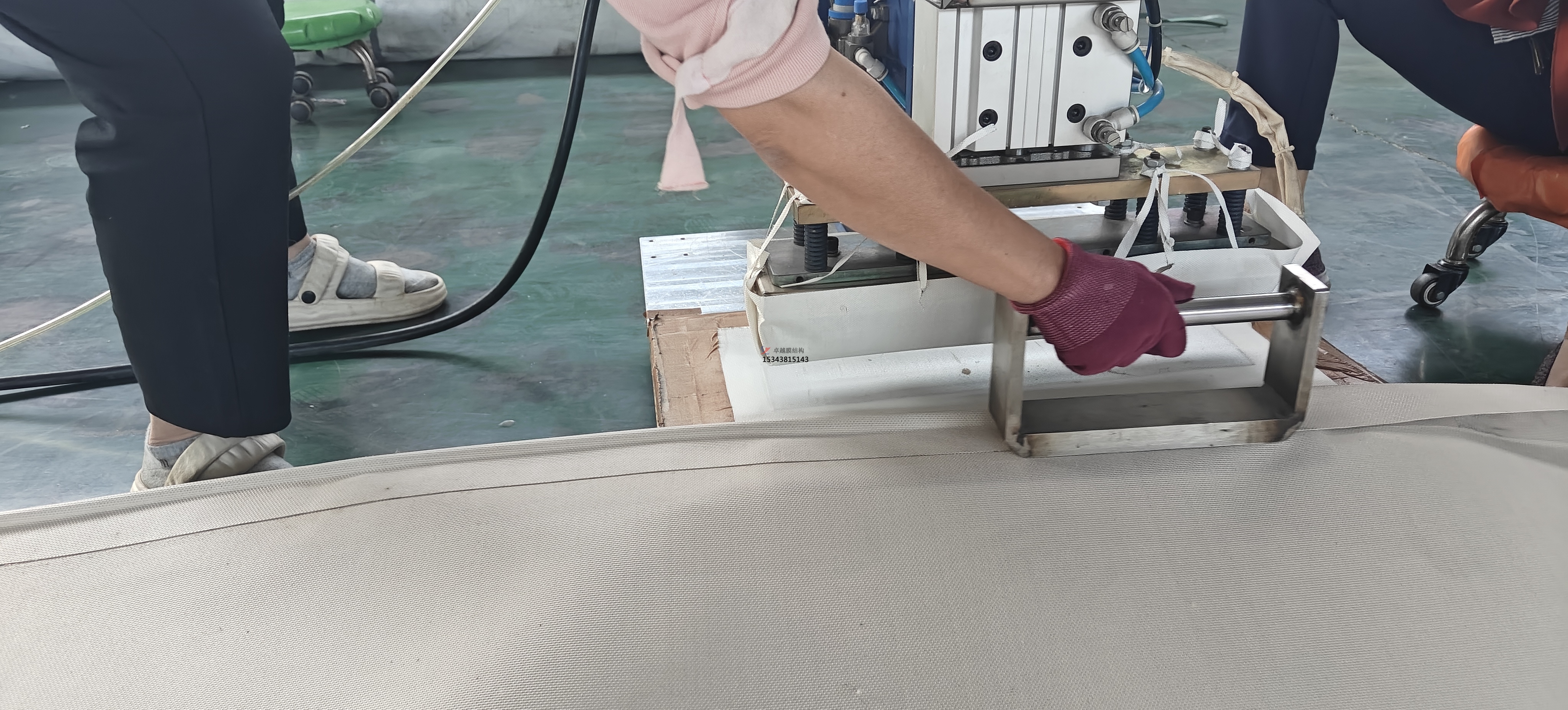 調(diào)試焊接設(shè)備,調(diào)整焊接溫度、焊接速度、焊接壓力等參數(shù)。通常需要根據(jù)膜材的具體情況進(jìn)行試驗(yàn)焊接,以確定最佳的焊接參數(shù)。