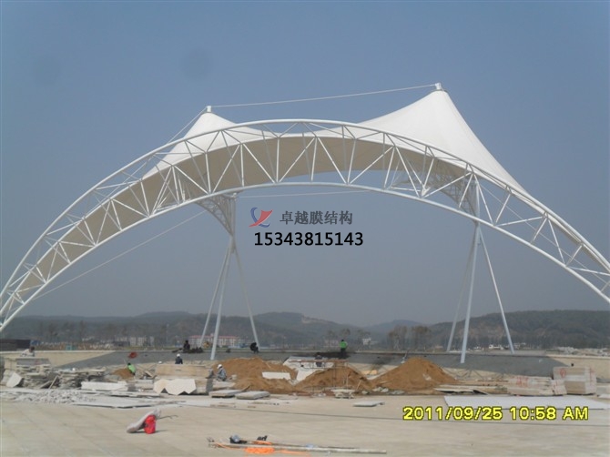 5、結(jié)構(gòu)穩(wěn)定,張拉膜結(jié)構(gòu)不是剛性的,其在風(fēng)荷載或雪荷載的作用下會(huì)產(chǎn)生變形。膜結(jié)構(gòu)通過(guò)變形來(lái)適應(yīng)外荷載,在此過(guò)程中荷載作用方向上的膜面曲率半徑會(huì)減小,直至能更有效抵抗該荷載。鄭州卓越膜結(jié)構(gòu)工程有限公司專業(yè)做膜結(jié)構(gòu)大門。