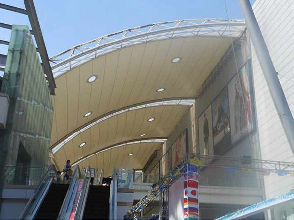 煙臺(tái)市商場(chǎng)膜結(jié)構(gòu)、商業(yè)街頂蓋膜結(jié)構(gòu)、步行街走廊頂棚、罩棚、遮陽(yáng)棚、雨棚工程案例