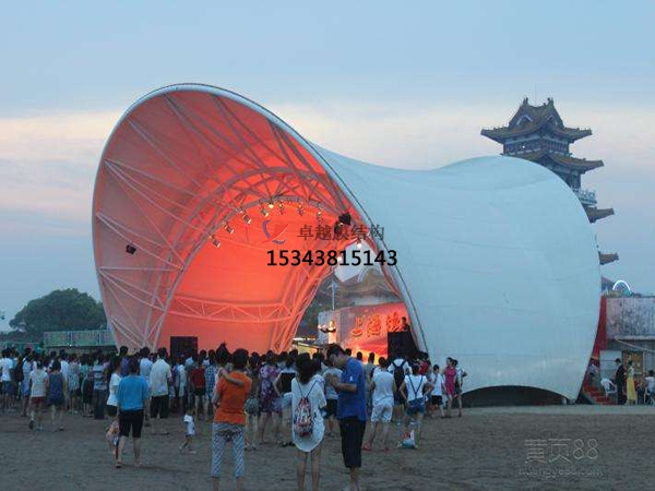 1、混凝土結(jié)構(gòu)主體加鋼拱以上兩種更簡單的膜結(jié)構(gòu),依平面的形狀,如方形、菱形等,可有許多變化,拱的間距依使用的膜材強(qiáng)度、設(shè)計(jì)荷載、風(fēng)力等確定。