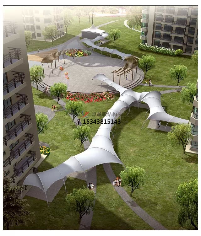 膜結(jié)構(gòu)景觀具有結(jié)構(gòu)牢固、外觀新穎,經(jīng)濟(jì)適用,適用壽命長(zhǎng),節(jié)能環(huán)保等優(yōu)點(diǎn)。深受廣大用戶的一致好評(píng),卓越所有工程全部都是通過(guò)專業(yè)3D3S膜結(jié)構(gòu)軟件計(jì)算通過(guò),結(jié)構(gòu)安全,質(zhì)量可靠。