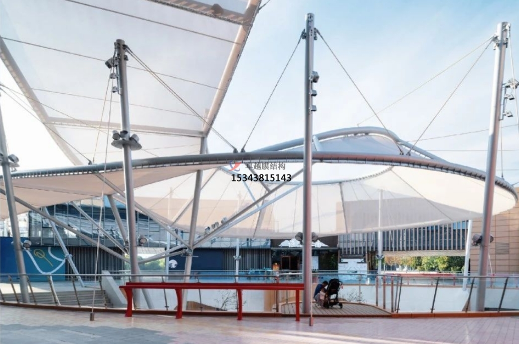 膜結(jié)構(gòu)頂棚的另一大優(yōu)勢是其出色的遮風(fēng)擋雨功能。無論是夏日的暴曬還是冬日的寒風(fēng),膜結(jié)構(gòu)頂棚都能為商場提供有效的保護(hù)。它們防水防沙、隔絕噪音,還有紫外線防護(hù)功能,讓建筑內(nèi)部始終保持舒適宜人的環(huán)境。這種四季宜人的購物環(huán)境,極大地提升了消費(fèi)者的購物體驗。