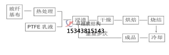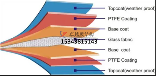 PTFE膜材,G類膜材,采用浸漬涂層法,是在超細玻璃纖維基布上涂覆PTFE樹脂而成的復(fù)合材料。