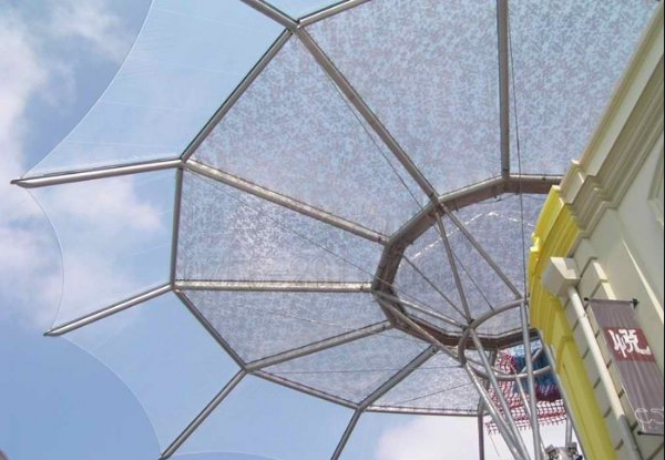 目前,PTFE 膜材應(yīng)用范圍已比較廣泛,包括各類體育建筑、展覽建筑、機場建筑及設(shè)施、海濱娛樂休閑建筑及設(shè)施等。國際頂級場館有日本的東京穹頂、亞特蘭大的佐治亞穹質(zhì)、英國的千年穹頂、韓國的漢城體育場等等。國內(nèi)也在大量興起:如上海八萬人體育館、上海F1賽車館等。生產(chǎn)這種建筑膜材的國外廠家很多,如德國Mehler公司日本TalyoKogyo公司、中興化成工業(yè)株式會社、美國Chenfab公司,他們都有比較成熟的制備技術(shù)。目前國內(nèi)公司也投入研制生產(chǎn),但目前國內(nèi)膜結(jié)構(gòu)公司大多數(shù)都是高價從國外購買此種建筑膜材進行膜結(jié)構(gòu)的建設(shè)。