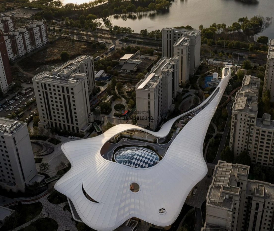 內(nèi)部的燈光照明透過膜材微微泛出一些光澤,仿佛陽光照在水滴之上。