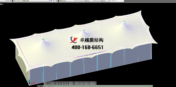 膜結構設計應考慮恒荷載、活荷載、風荷載、雪荷載、預張力、氣壓力、溫度和支座不均勻沉降等作用。荷載標準值應按現行更好的標準《建筑結構荷載規(guī)范》GB50009的規(guī)定采用,膜面的活荷載標準值取0.3kN/㎡。