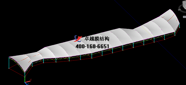膜結構設計時,應在滿足膜面應力平衡狀態(tài)的條件下,使結構體系保持穩(wěn)定。還應考慮使用階段局部膜片破壞或局部索退出工作,以及對不同部位膜單元進行二次張拉或更換對整體結構的影響。