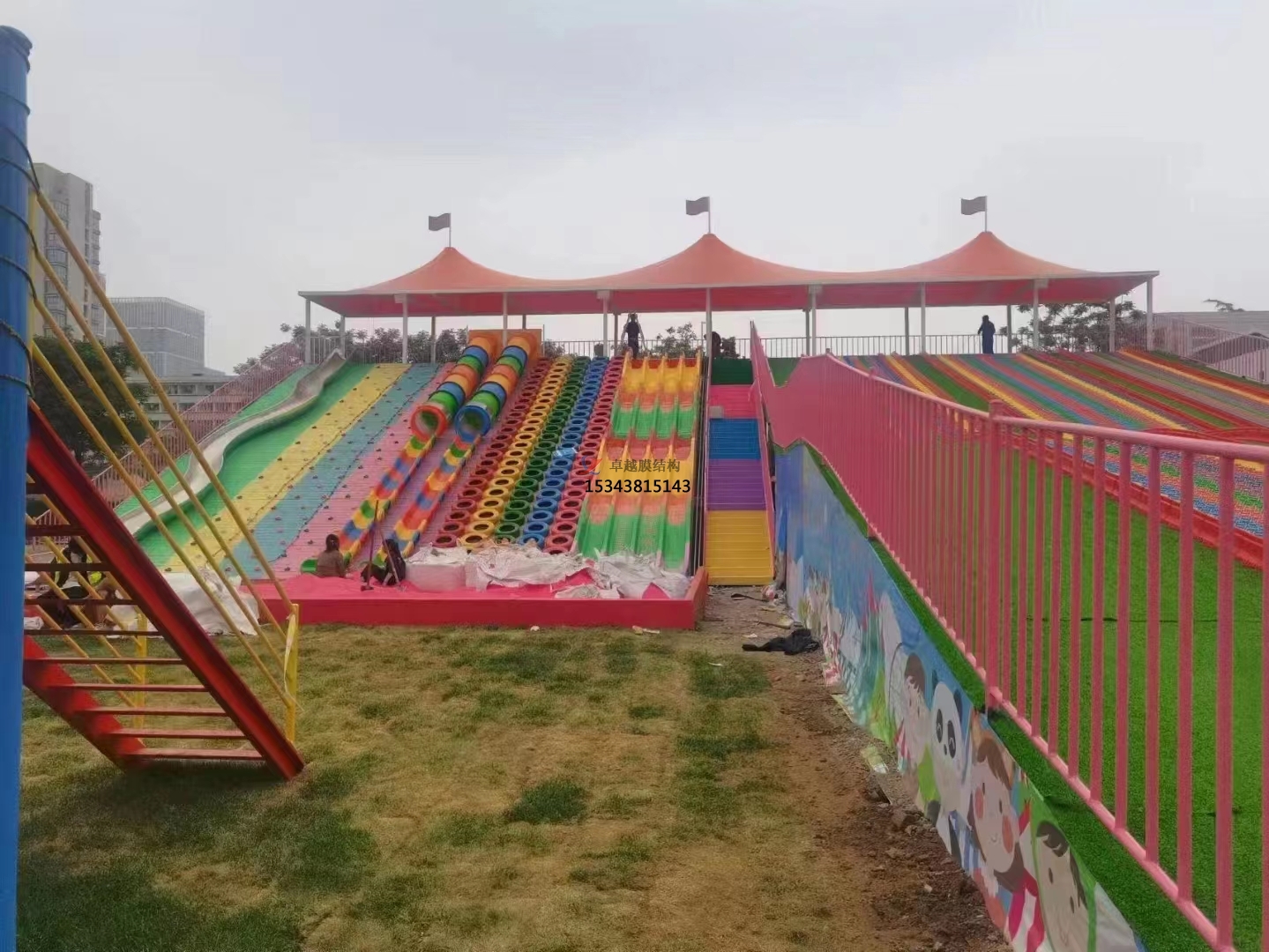 濮陽彩虹滑道游樂設(shè)備紅色遮陽棚結(jié)構(gòu)設(shè)計生產(chǎn)