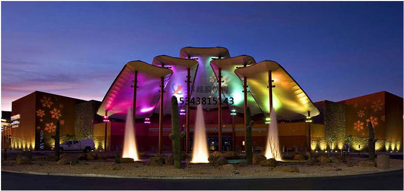 亞克麗處理的膜材一般用于帳篷、卡車篷布或廣告布,其使用壽命短、抗拉強(qiáng)度低,一般不用于膜結(jié)構(gòu)建筑;可焊接型Pvc類膜材,表面PVDF涂層濃度較低,膜材幾乎沒有自潔性,但價(jià)格非常便宜;