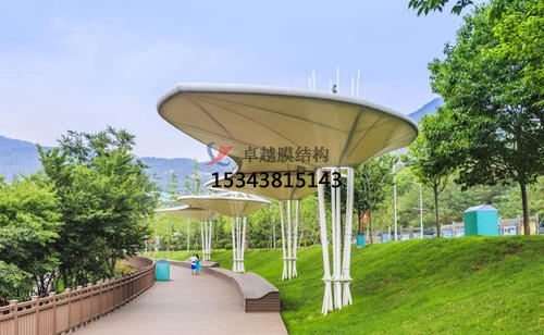 城市中廣場、公園是一種特別的休閑空間,其修建形象是經(jīng)過公眾在不一起間在其間的集聚得以體現(xiàn)。近年來隨著修建膜材的開發(fā)和使用,張拉膜景觀在國內(nèi)外得到迅速開展