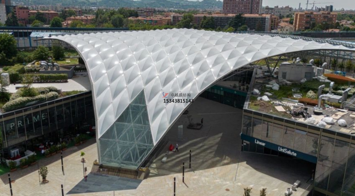 很多商場建造過程中,為了降低成本都會選擇膜結(jié)構(gòu)雨棚作為頂棚,這樣不僅能提升整體建筑美觀,還能作為有吸引消費者的主要目的,膜結(jié)構(gòu)雨棚有著良好的透光度,還具備有遮風擋雨防紫外線的功能等。