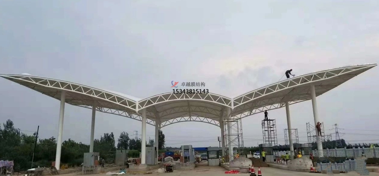 高速公路收費(fèi)站膜結(jié)構(gòu)頂棚的設(shè)計(jì)原理主要基于結(jié)構(gòu)力學(xué)、材料科學(xué)和建筑美學(xué)的綜合應(yīng)用。