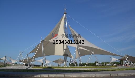 一個(gè)城市的中心區(qū)反映一個(gè)城市的地理風(fēng)貌和民族風(fēng)情,一起,也是一個(gè)城市文化開展程度的標(biāo)志。而景象規(guī)劃要求其具有廣泛的可讀性、老少皆宜,既有超凡脫俗的藝術(shù)價(jià)值,又能使群眾喜聞樂見與群眾息息相通。張拉膜以其輕盈飄逸的造型、柔美并帶有力氣的曲線和大跨度和大空間的鮮明個(gè)性和標(biāo)識性,應(yīng)用于城市小品規(guī)劃中。