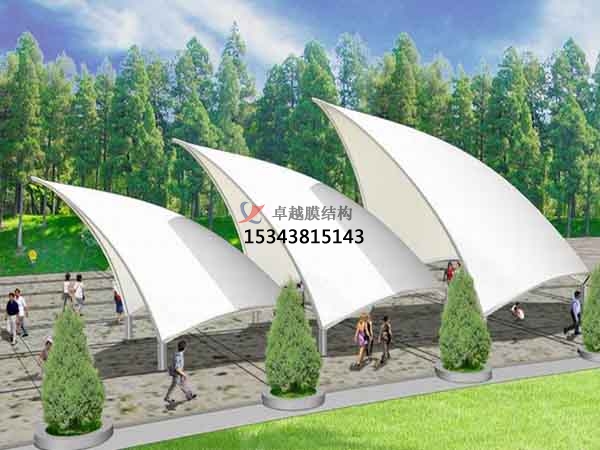 一個城市的中心區(qū)反映一個城市的地理風貌和民族風情,同時,也是一個城市文化發(fā)展程度的標志。而景觀設(shè)計要求其具有廣泛的可讀性、雅俗共賞,既有超凡脫俗的藝術(shù)價值,又能使大眾喜聞樂見與大眾息息相通。膜結(jié)構(gòu)以其輕盈飄逸的造型、柔美并帶有力量的曲線和大跨度和大空間的鮮明個性和標識性,應(yīng)用于城市小品設(shè)計中。