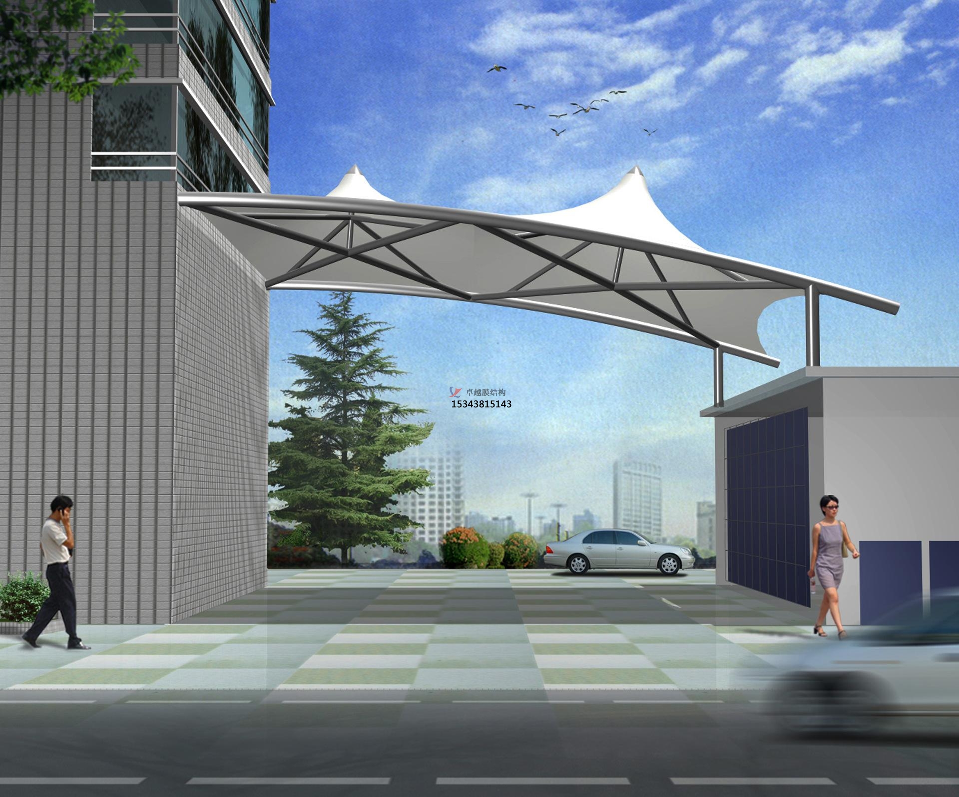 3、在安裝的時候要注意支架的穩(wěn)定性,根據(jù)設(shè)計師設(shè)計制作出的圖像來計算膜結(jié)構(gòu)的大小和商業(yè)廣場雨棚搭建的載荷。商業(yè)廣場雨棚搭建在正常情況下是不用承重的,如果遇到雨雪天或者刮風(fēng)的天氣就會對膜結(jié)構(gòu)建筑帶來影響,膜承受的壓力也會非常的大,所以設(shè)計人員在設(shè)計的時候一定要計算出膜結(jié)構(gòu)的荷載。