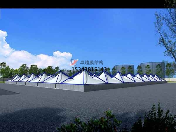 2、膜結(jié)構(gòu)是目前發(fā)展很快的一種新型空間結(jié)構(gòu),是一種效率極高的張力集成體系,可以充分發(fā)揮鋼索的強(qiáng)度與張拉整體結(jié)構(gòu)的空間作用。它通過鋼骨架、鋼索與膜材共同受力形式穩(wěn)定曲面來覆蓋建筑空間,具有高度的形體可塑性和結(jié)構(gòu)靈活性,即通過對膜材內(nèi)部施加一定的預(yù)張力,使其具備了抵抗外荷載能力,從而充當(dāng)結(jié)構(gòu)材料的一種結(jié)構(gòu)體系。我公司先后在白色地區(qū)承接污水池處理池膜結(jié)構(gòu)封閉的設(shè)計(jì)施工,簡介如下:
