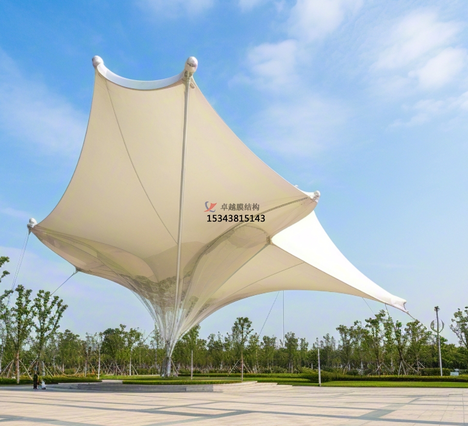 這些膜材共有的特性賦予了景觀膜結(jié)構(gòu)一種輕盈而靈動的視覺效果。相較于傳統(tǒng)的建筑材料,膜材的重量微乎其微,卻擁有驚人的張力承受能力,宛如一張堅韌的“皮膚”,能夠被拉伸成各種充滿創(chuàng)意的形狀。這種輕質(zhì)特性不僅有效降低了基礎設施建設成本和施工難度,還使得膜結(jié)構(gòu)能夠在特殊地形或荷載限制嚴格的區(qū)域得以應用,從而極大地豐富了景觀設計的可能性。