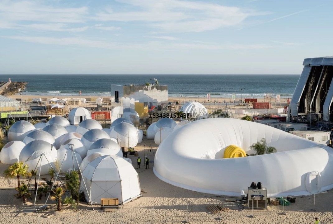 充氣式膜結(jié)構(gòu)憑借內(nèi)部氣壓的支撐,塑造出別具一格的形態(tài),廣泛運用于臨時性景觀設施以及主題公園中的特色建筑,例如充氣城堡與充氣展覽館。憑借其獨特的外觀與便捷的搭建特點,這些結(jié)構(gòu)成為吸引公眾目光的亮點,為景觀空間增添了活潑與歡樂的氣氛。