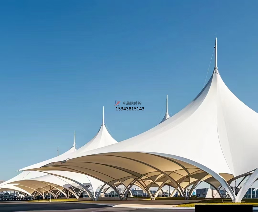 在各大交通樞紐,諸如機場、火車站的站前廣場,膜結(jié)構(gòu)雨棚的設計既便利了旅客出行,又以其醒目的形態(tài)有效引導了人流。以北京首都國際機場的T3航站樓為例,其前方的巨大膜結(jié)構(gòu)雨棚宛如一只振翅欲飛的鯤鵬,氣勢恢宏。它不僅滿足了實際使用需求,更成為機場一道別具一格的風景線,給過往旅客留下了難以忘懷的印象。