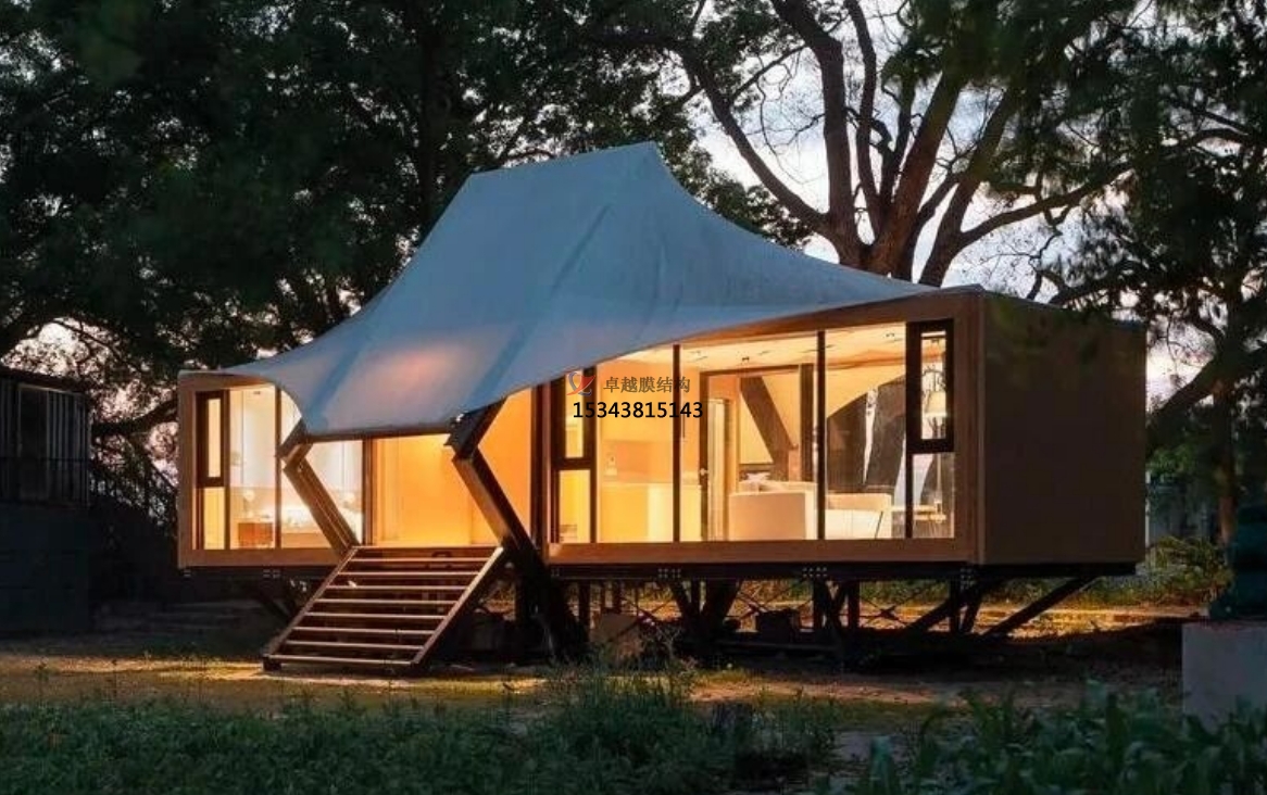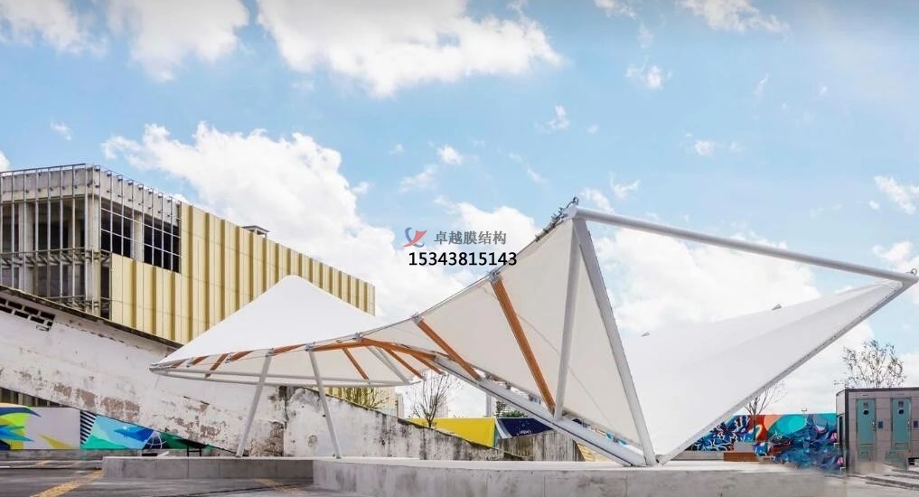 膜結(jié)構(gòu)景觀以其獨(dú)特的外觀和多樣化的功能而備受關(guān)注。膜結(jié)構(gòu)景觀不僅在建筑物上創(chuàng)造出令人印象深刻的視覺效果,同時(shí)還具有良好的抗風(fēng)、防水、強(qiáng)度高、耐候性好,防火阻燃、自潔性好,并且不受紫外光線的影響,使用壽命在20年以上。