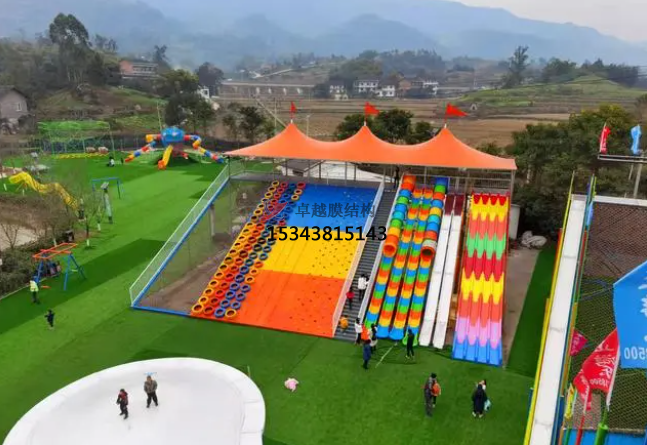 信陽彩虹滑道游樂設(shè)備紅色遮陽棚結(jié)構(gòu)設(shè)計生產(chǎn)