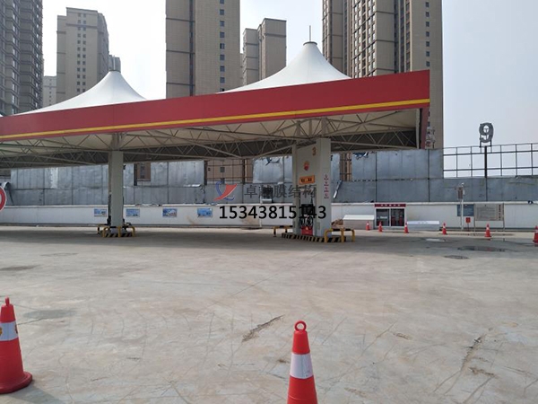 用于加氣站雨棚施工中的膜材是一種具有高強度、柔韌性好的薄膜材料;中心的織物基材分為聚酯纖維及玻璃纖維,而作為涂層材使用的樹脂有聚氯乙烯樹脂(PVC),硅酮及聚四氟乙烯樹脂(PTFE),它具有輕質(zhì)、柔韌、厚度小、重量輕、透光性好;對自然光有反射、吸收和透射能力;它不燃、難燃或阻燃;具有耐久、防火、氣密良好等特性;表面經(jīng)氟素處理(涂覆PVF或PVDF)的膜材、自身不發(fā)粘、有很好的自潔性能。