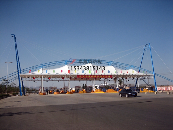 膜結構(Membrane)是20世紀中期發(fā)展起來的一種新型建筑結構形式,膜結構收費站是由多種高強薄膜材料及加強構件(鋼架、鋼柱或鋼索)通過一定方式使其內部產生一定的預張應力以形成某種空間形狀,作為覆蓋結構,并能承受一定的外荷載作用的一種空間結構形式。膜結構是建筑結構中新發(fā)展起來的一種形式,自從1970年代以來, 膜結構在國外已逐漸應用于體育建筑、商場、展覽中心、交通服務設施等大跨度建筑中。