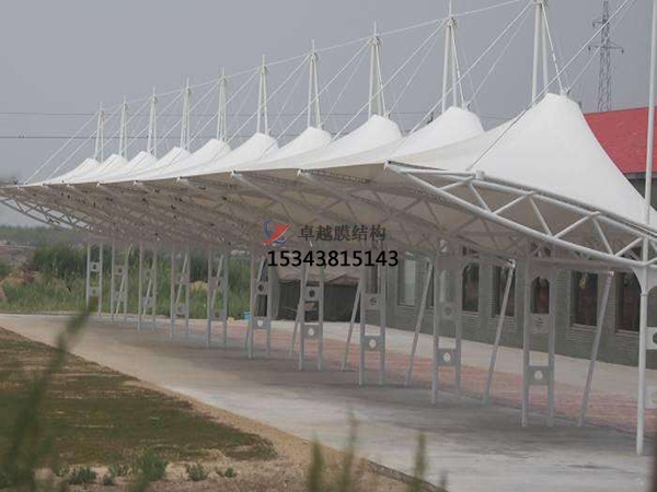車棚是一種古老的建筑形式,自有史以來就被用來作為房屋和簡易的遮蔽物。如今隨著建筑技術(shù),計算機技術(shù)和新材料研究的飛速發(fā)展,性能優(yōu)良的新型膜材被用于建造永久性的車棚結(jié)構(gòu),即膜結(jié)構(gòu)車棚,這種結(jié)構(gòu)的車棚一般由索和膜材這些柔性材料張拉而成。